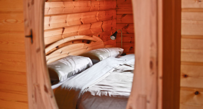 Stereoanlage, einem Schlafzimmer mit Doppelbett und einem Bad mit Dusche.